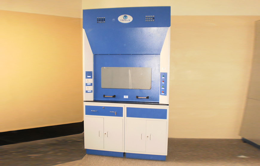 Fume Hood are mandatory for chemical, industrial and research laboratories for the removal of toxic / corrosive fumes and gases becomes critical. All fumes , gases while performing various test are removed by ventilating hood by means of exhaust blowers mounted outside the room. Our fume hoods are manufactured from best quality elector Galvanized sheets of 200G which provides better protection from acid fumes in the lab.